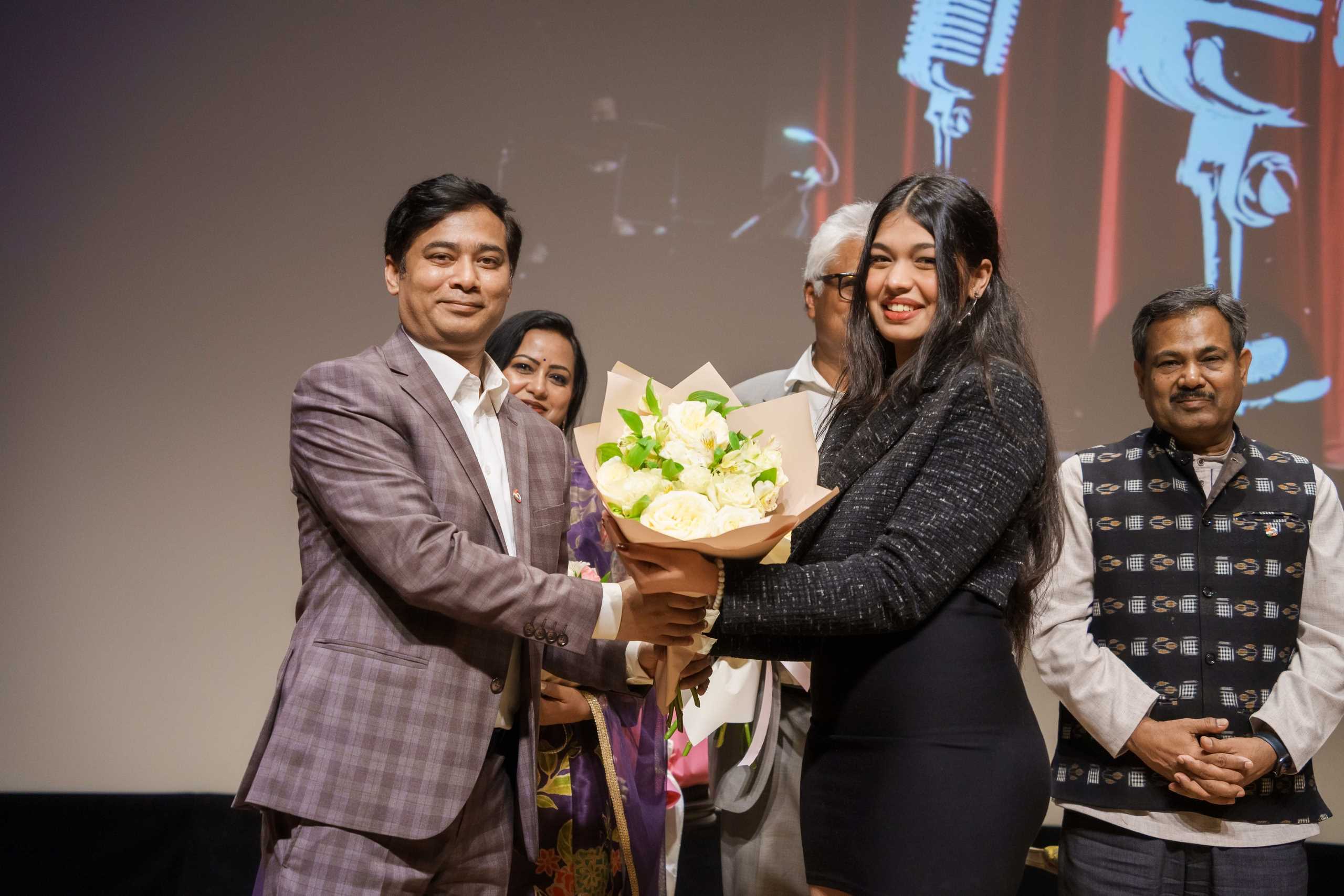 Вели этот замечательный вечер юмора Канта Деви, Юкта Мандал и Санчали Гаде. Выступления знаменитых индийских поэтов, писателей, сатириков, которые участвуют в различных самых популярных юмористических шоу Аруна Джемини, Чирага Джайна и Гаурава Шармы, завоевали сердца молодых зрителей. Зал на протяжении всего вечера взрывался аплодисментами. Вечер прошел в веселой и непринужденной атмосфере шуток, смеха и улыбок – действительно юмор без границ!