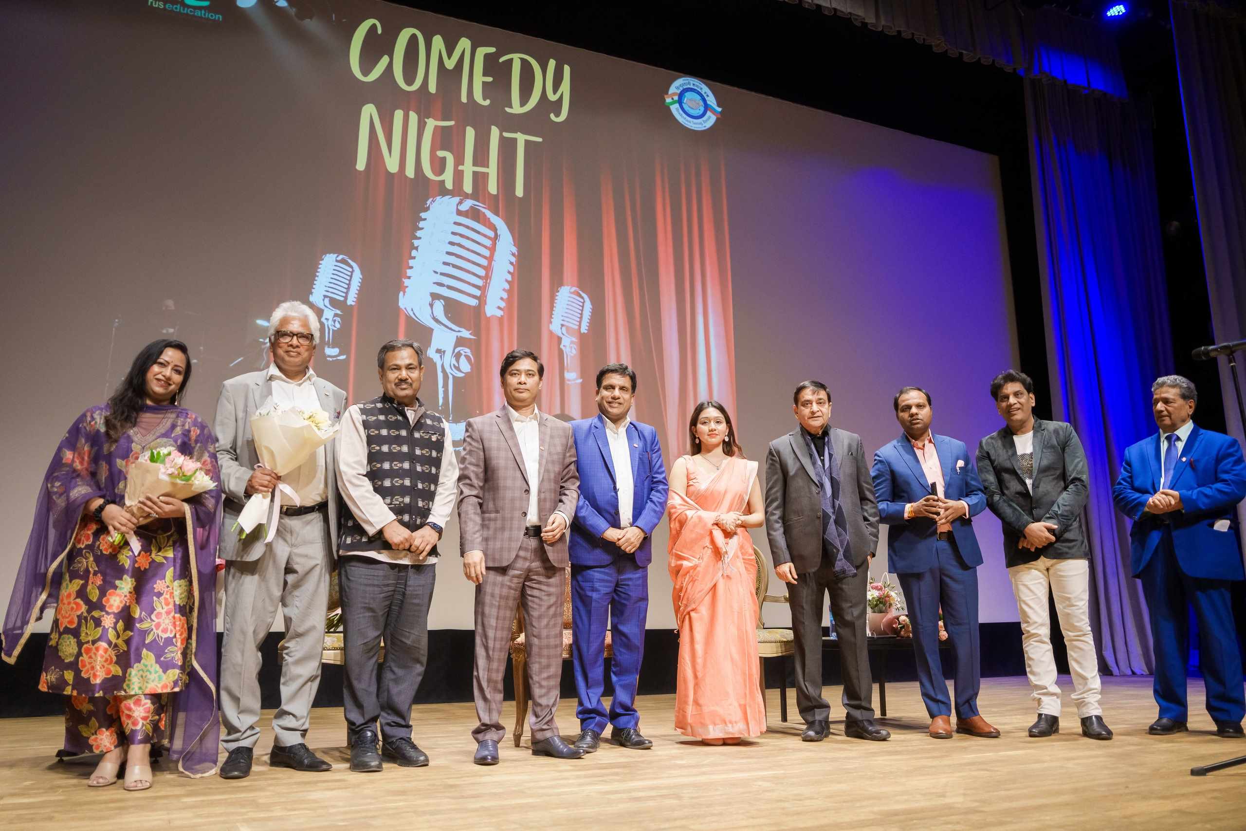 На одной из главных площадок Твери – в киноконцертном зале «Панорама» – накануне Дня смеха 1 апреля прошел вечер юмора «Hasya sandhya-2025». Его организовала старейшая индийская общественно-культурная организация «Хиндустани Самадж» (индийское землячество). Эта организация создана в Москве в 1957 году и объединяет индийцев, живущих в нашей стране: бизнесменов, научных работников, студентов. Землячество регулярно проводит культурные мероприятия на различных площадках – выставки, фестивали индийской культуры и кинематографа, – приглашает из Индии актеров, художников, певцов, танцоров. Проведение такого успешного мероприятия стало возможным благодаря замечательной команде «Хиндустани Самадж», которая успешно скоординировала это мероприятие с посольством Индии в России и при поддержке Rus Education под руководством Мизанура Чоудхури.