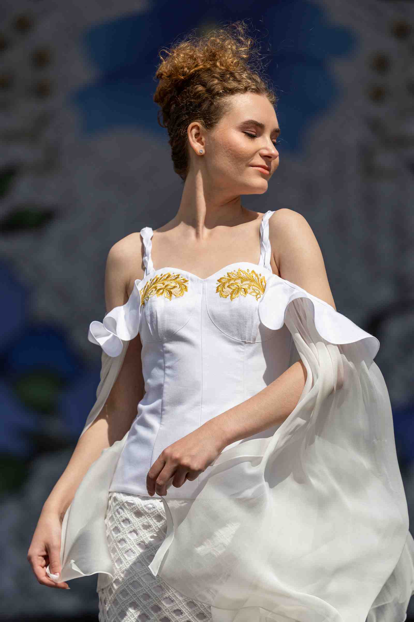 Сказано – сделано! Несколько месяцев шла работа над этим действительно эксклюзивным проектом. И вот новая коллекция с говорящим названием «Луч солнца золотого» была показана 29 июня в Минске на Международном фестивале «Свята льну». Основная цель этого, уже третьего по счету, фестиваля – популяризация национальных и духовных ценностей и традиций, демонстрация перспектив использования льна для развития легкой промышленности, художественных промыслов, создания инновационных продовольственных товаров – была блестяще достигнута. С белорусской стороны был активно задействован ведущий художник-модельер ОАО «Центр моды» Антон Ярощик. А вся работа велась в тесной коллаборации с представителями компании «Торжокские золотошвеи», которые бережно хранят и приумножают старинный промысел.